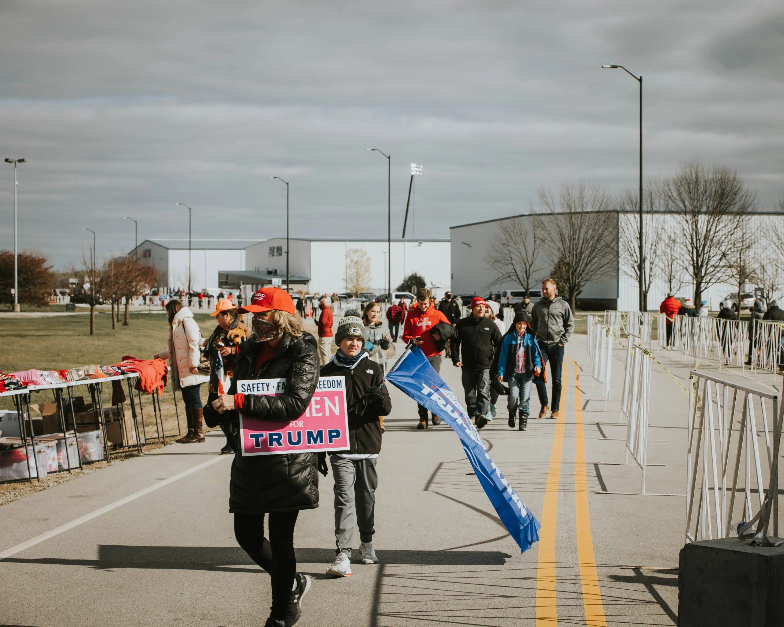 Trump supporters in line to get into the Jet Air hangar for the president’s appearance at Green Bay Austin Straubel International Airport on October 30, 2020. (WTAQ/Casey Nelson)