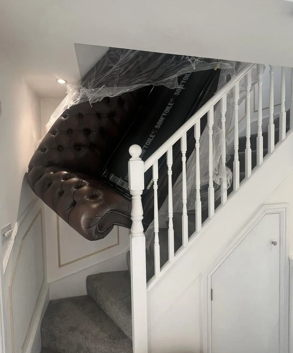 In England, Luke Ansell ordered the sofa from an online retailer. During the delivery, the sofa company’s workers got it wedged while trying to get it to the home’s second floor — and left saying they had no time to fix it. The company has disputed some of the facts and said it would replace the sofa and pay for house repairs. In an email to Ansell, the company said: “Whilst our driver and his colleague attempted to get the sofa up the second flight of steps you also tried to help and between yourself and the two delivery persons managed to get the sofa wedged and also damage the walls.”